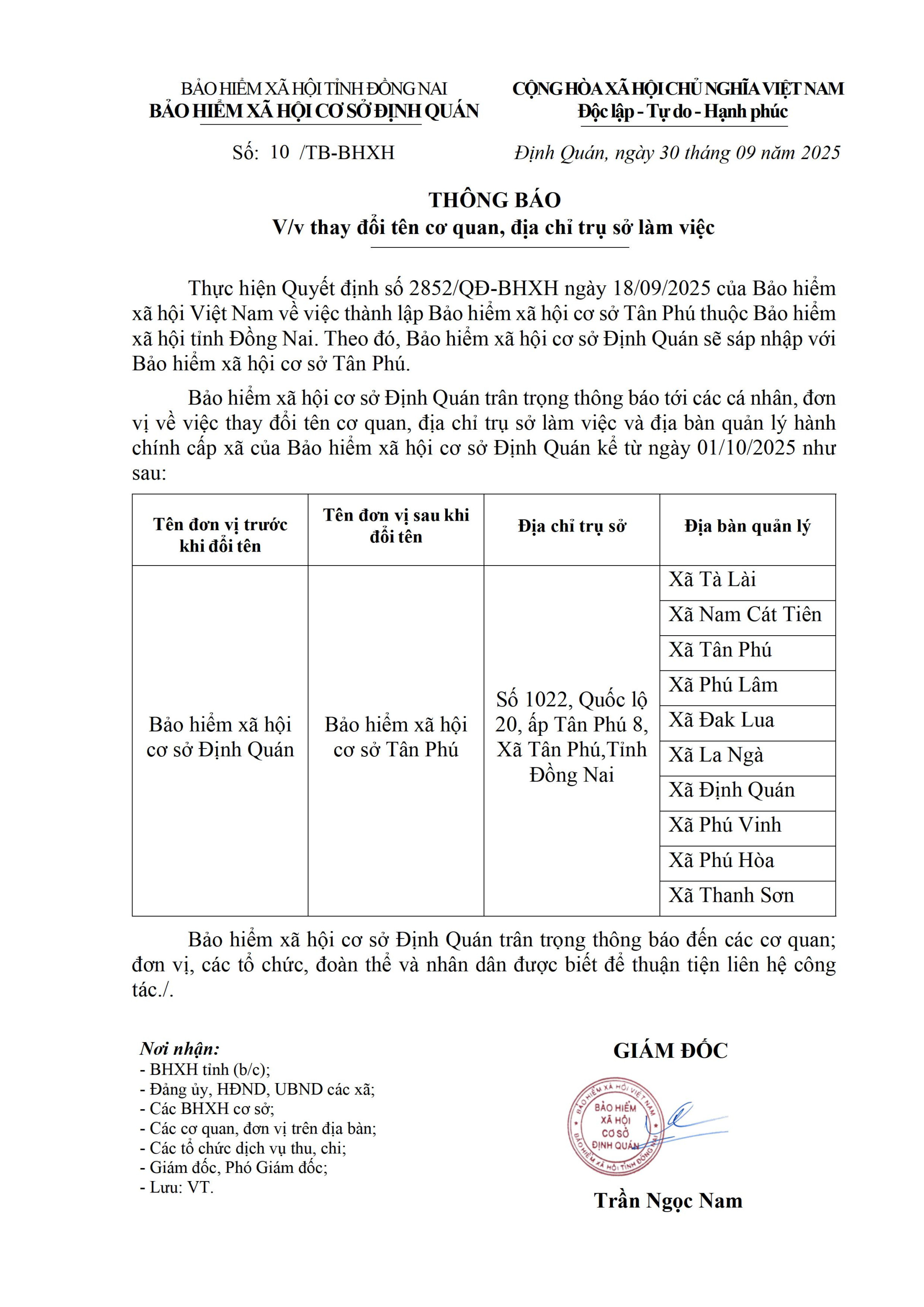 Quyết định về việc cho phép chuyển mục đích sử dụng đất ông Trần Văn Phúc và bà Đỗ Thị Thúy Liễu - Địa chỉ: xã Tà Lài, tỉnh Đồng Nai