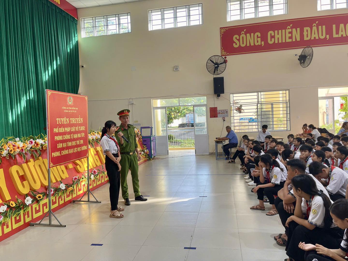 Công an xã Tà Lài tổ chức tuyên truyền pháp luật, phòng chống tệ nạn ma túy, xâm hại tình dục trẻ em, bạo lực học đường và an toàn giao thông tại trường THCS Núi Tượng