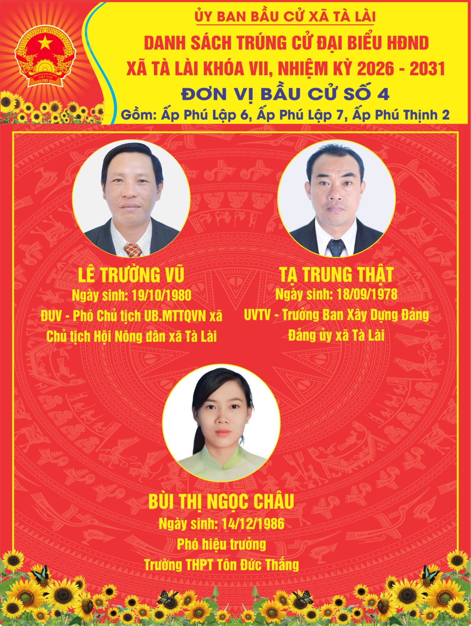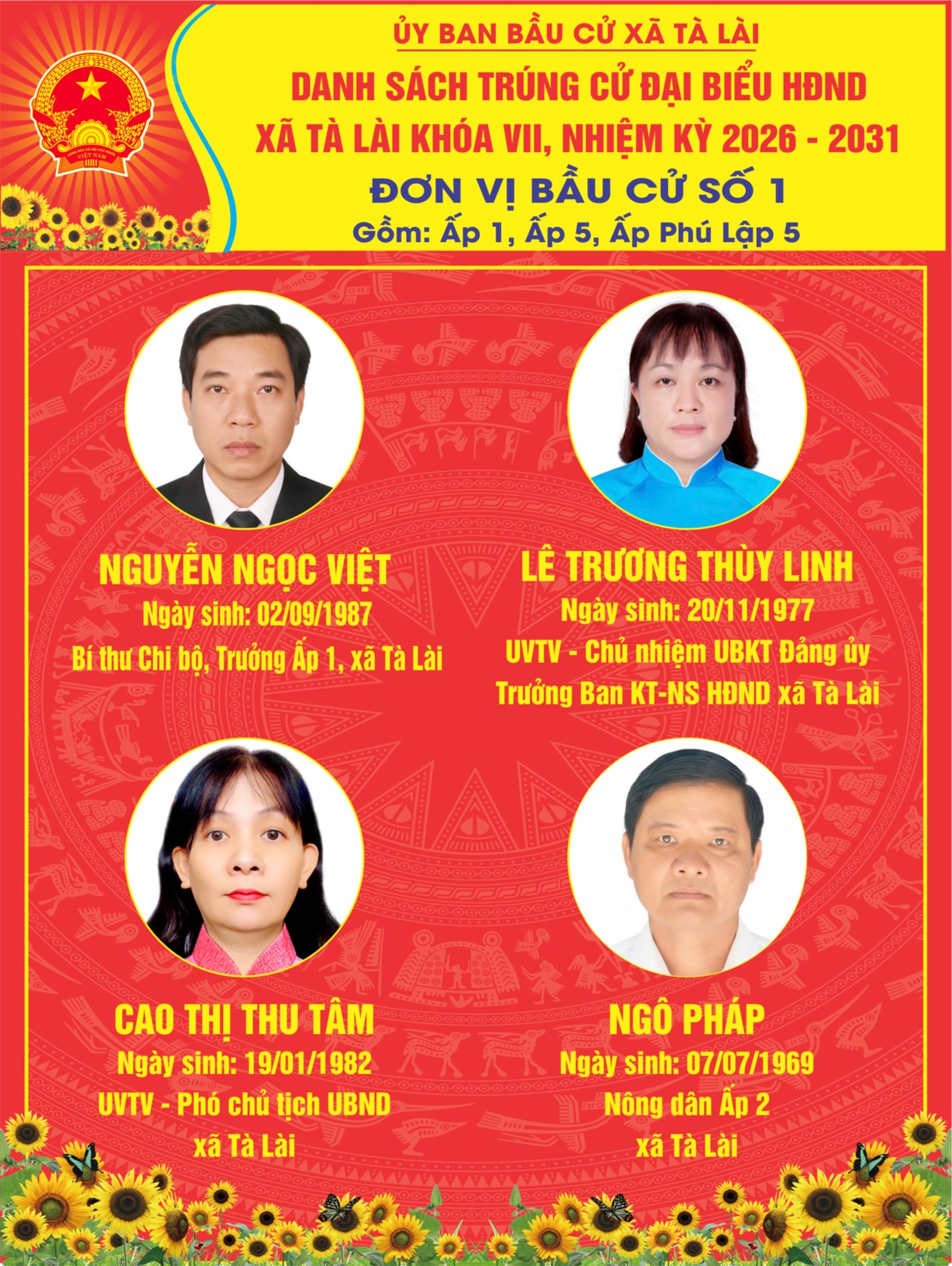 Theo đó, xác nhận 22 ông, bà (có danh sách kèm theo) đã trúng cử đại biểu Hội đồng nhân dân xã Tà Lài khoá VII, nhiệm kỳ 2026-2031 có đủ tư cách thực hiện nhiệm vụ, quyền hạn của đại biểu Hội đồng nhân dân theo quy định của pháp luật.