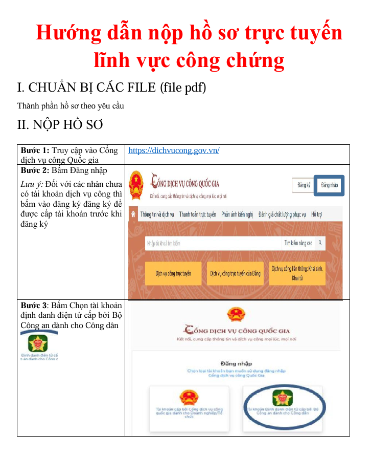 Hướng dẫn nộp hồ sơ trực tuyến lĩnh vực công chứng
