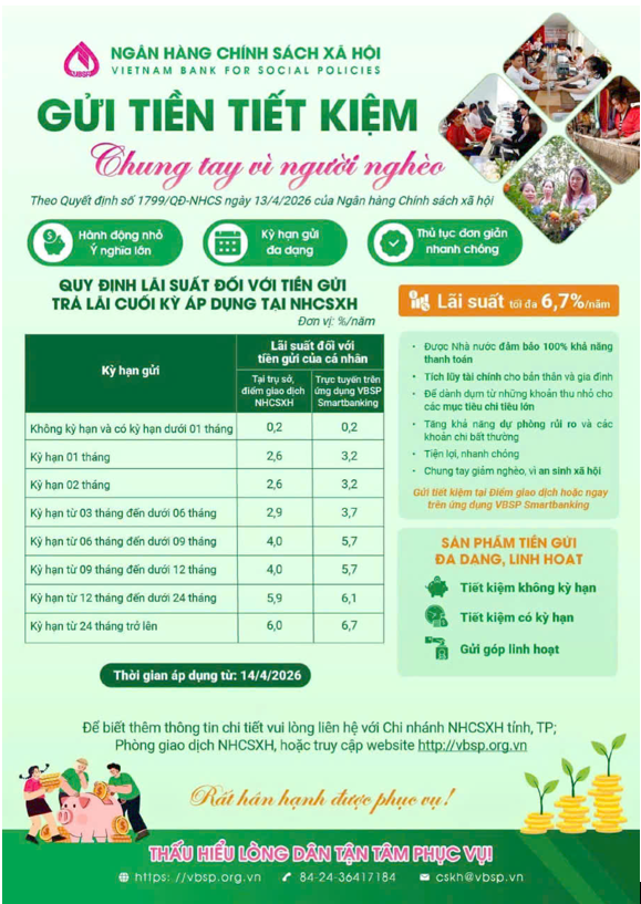 - Chung tay vì cộng đồng – Vốn huy động phục vụ cho vay hộ nghèo, cận nghèo và đối tượng chính sách, góp phần giảm nghèo bền vững!