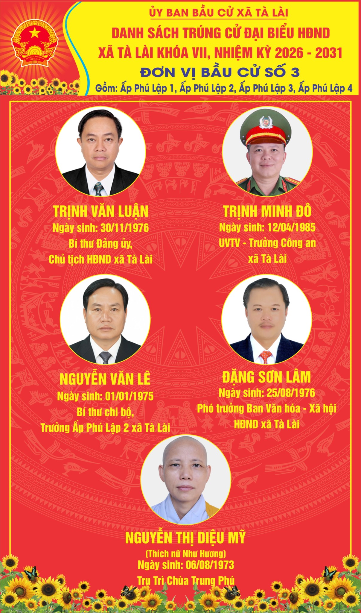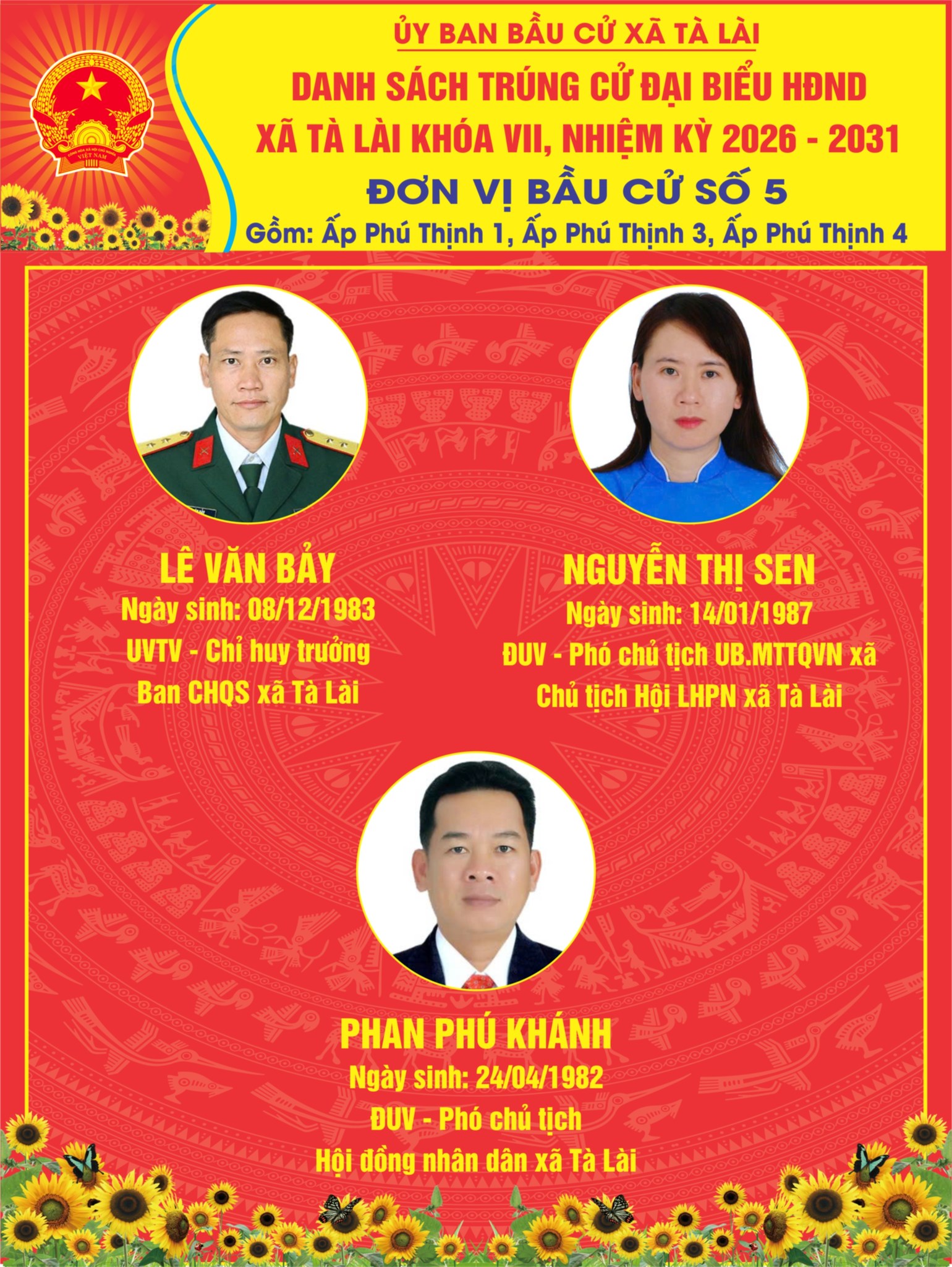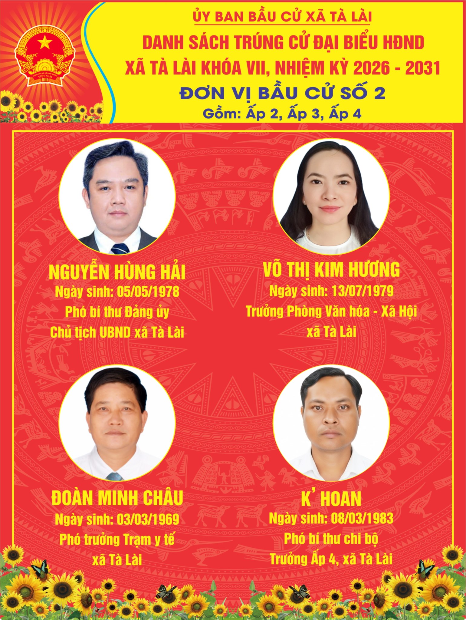 Uỷ ban bầu cử xã Tà Lài vừa ban hành Nghị quyết số 03/NQ-UBBC ngày 23/03/2026 về việc xác nhận tư cách địa biểu Hội đồng nhân dân xã nhiệm kỳ 2026 -2031 trên địa bàn xã.