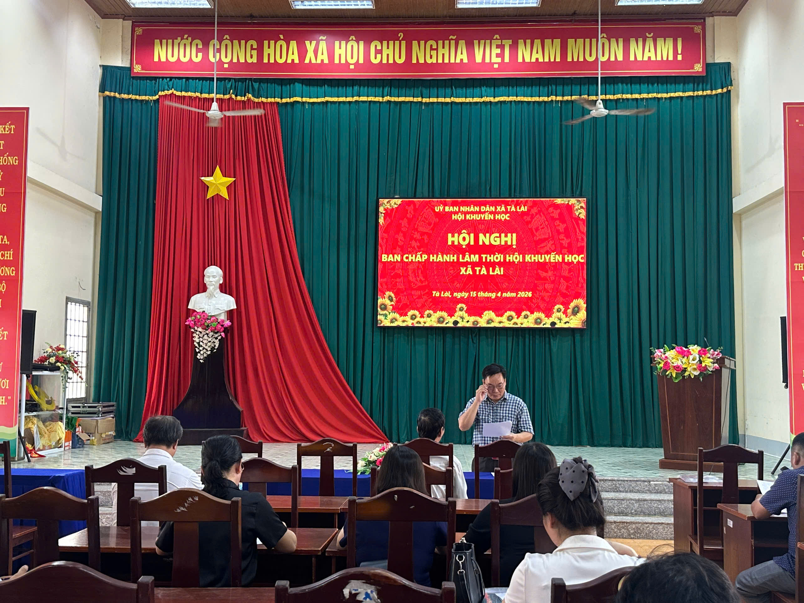Chiều 15/4/2026, tại Nhà Văn hóa các dân tộc xã Tà Lài, Hội Khuyến học xã đã tổ chức Hội nghị Ban Chấp hành lâm thời nhằm chuẩn bị các nội dung quan trọng cho Đại hội đại biểu Hội Khuyến học xã lần thứ I, nhiệm kỳ 2026–2031. Tham dự hội nghị có Chủ tịch, Phó Chủ tịch lâm thời Hội Khuyến học xã cùng các Ủy viên Ban Chấp hành lâm thời.