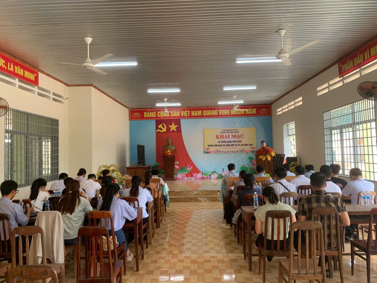 <figcaption><em>Qaung cảnh buổi khai mạc kỳ tuyển dụng viên chức Trung tâm Dịch vụ tổng hợp xã</em></figcaption>