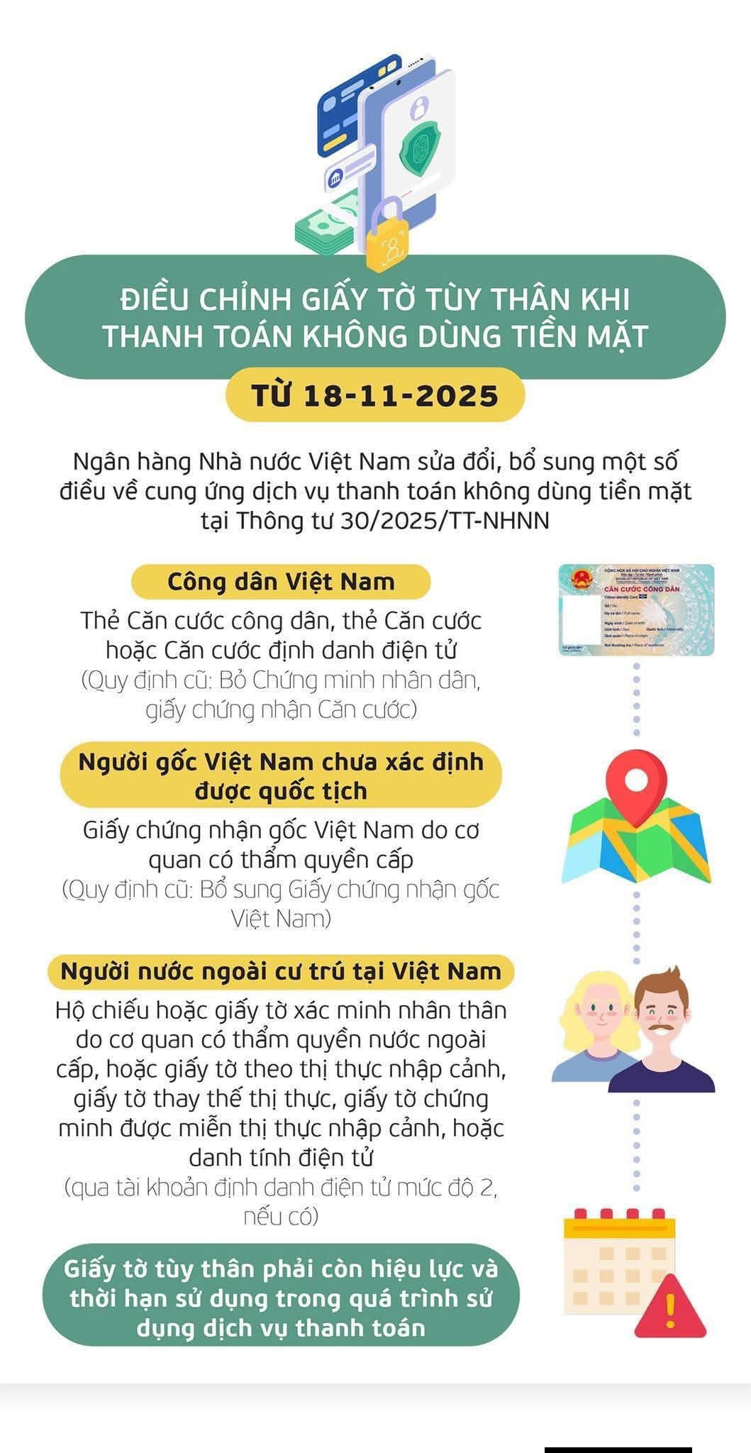 2. Điều chỉnh giấy tờ tùy thân khi thanh toán không dùng tiền mặt từ 18/11/2025