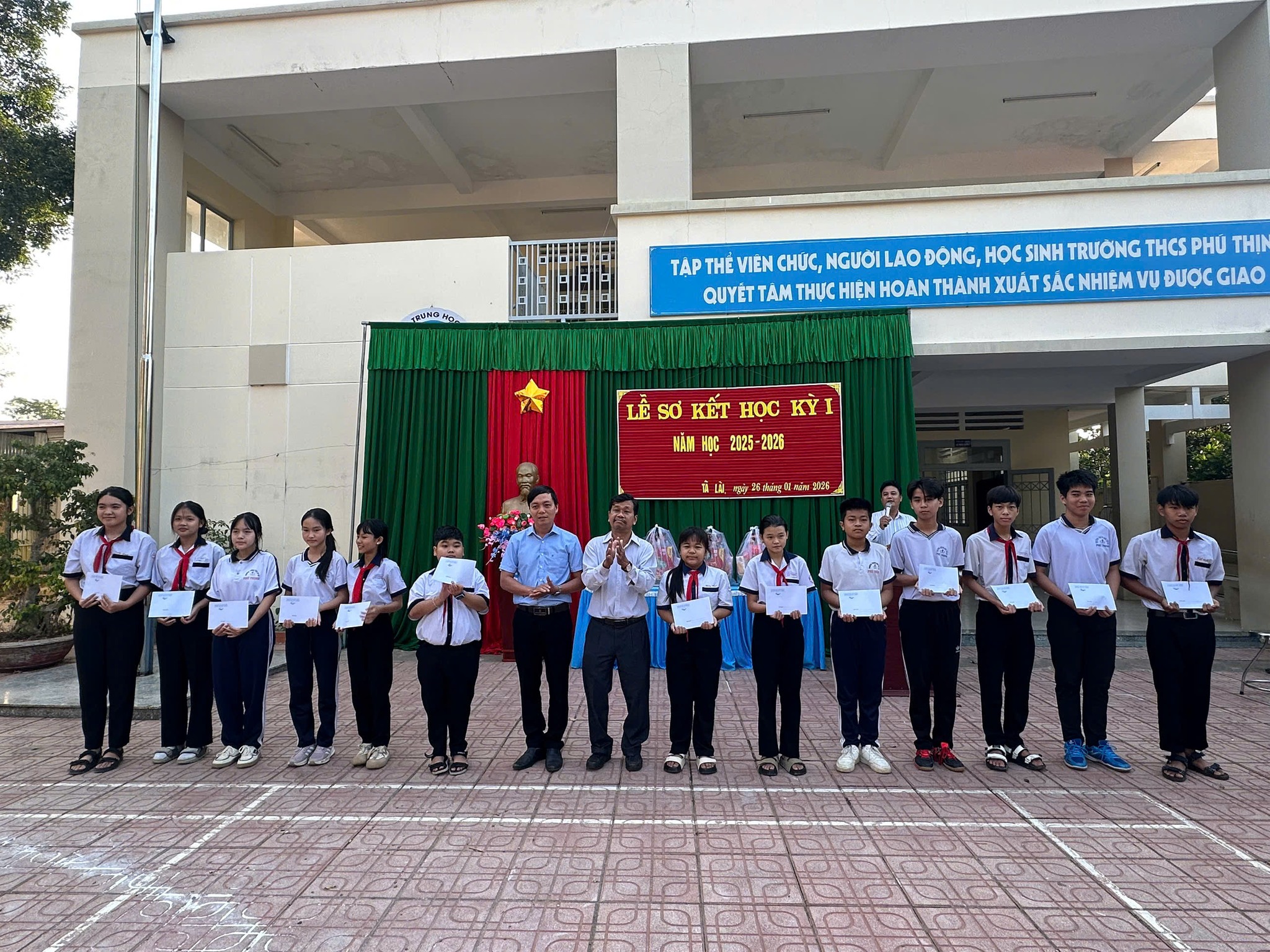Tại buổi lễ, thầy Đặng Thanh Phát – giáo viên Toán Trường THPT Đoàn Kết, với vai trò là mạnh thường quân, đã trao 13 suất học bổng, mỗi suất trị giá 500.000 đồng, cho 13 học sinh giỏi và xuất sắc, đại diện cho 13 chi đội của nhà trường. Đây là sự ghi nhận xứng đáng đối với những nỗ lực không ngừng của các em trong học tập và rèn luyện.