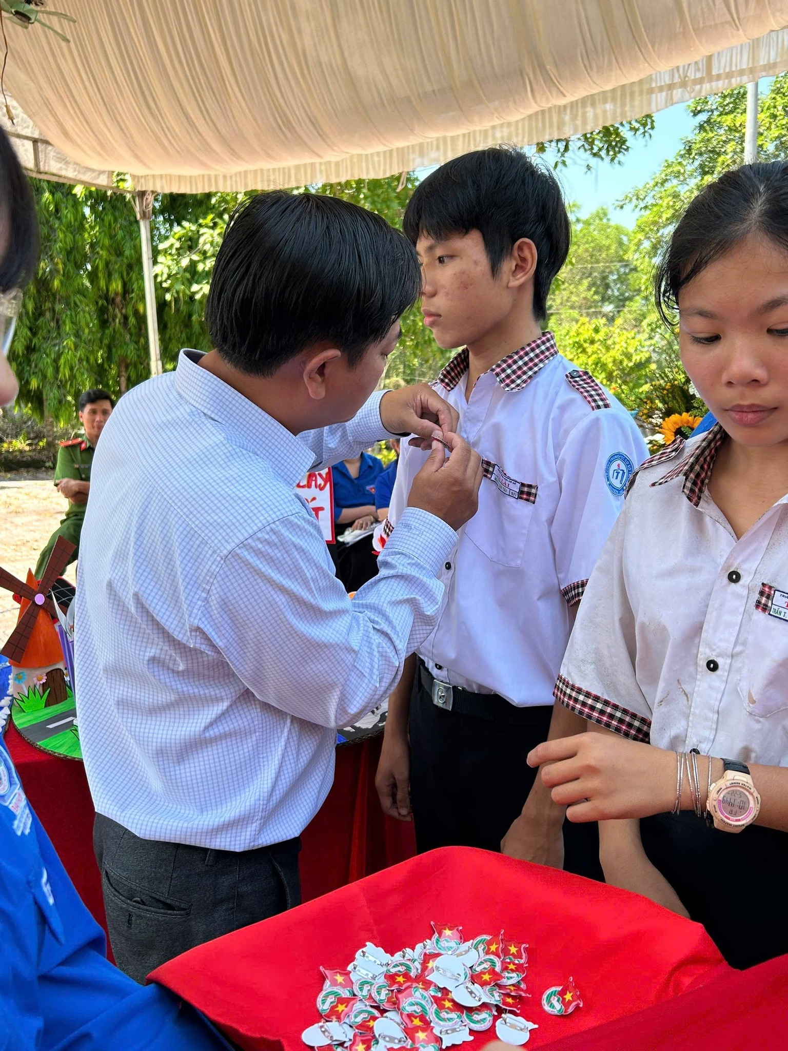 Lãnh đạo địa phương trao Giấy chứng nhận cho các bạn đoàn viên mới được kết nạp trong dịp này