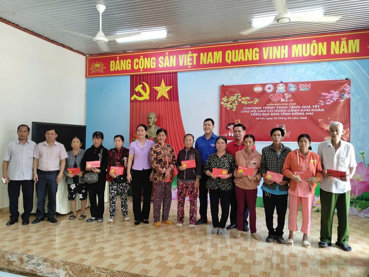 Hội Chữ Thập đỏ tỉnh Đồng Nai phối hợp với Công ty TNHH MTV Xổ số kiến thiết và Dịch vụ Tổng hợp Đồng Nai trao 150 phần quà cho hộ nghèo xã Tà Lài trong ngày 29/01/2026