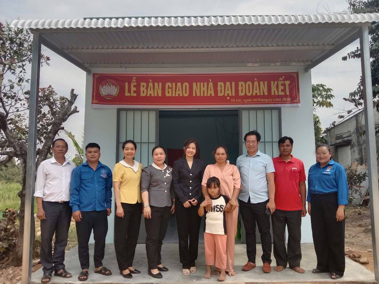 Cùng ngày, tại Nhà Văn hóa ấp 2, gia đình chị Ba Phương (phường Trấn Biên, tỉnh Đồng Nai) đã trao 200 phần quà, tổng trị giá 60 triệu đồng, cho các hộ khó khăn; đồng thời bàn giao 01 căn nhà Đại đoàn kết trị giá 80 triệu đồng cho hộ chị Ka’ Hương (ấp 4, xã Tà Lài).