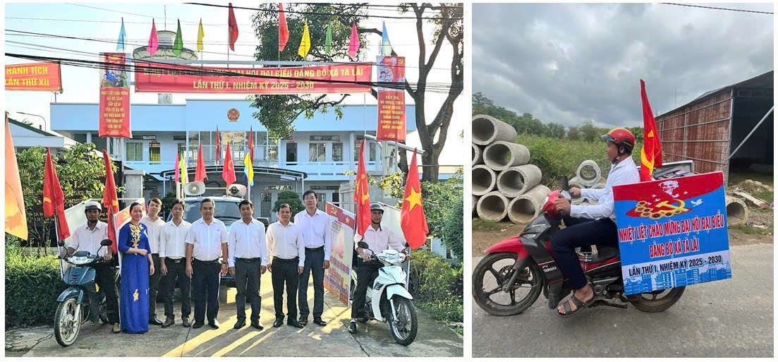 Công tác tuyên truyền trước, trong và sau đại hội được Phòng Văn hóa – Xã hội phối hợp chặt chẽ với các đoàn thể và các ấp triển khai sâu rộng. Từ những ngày đầu tháng Tám, khắp các trục đường của xã Tà Lài đều được trang hoàng rực rỡ với cờ Đảng, cờ Tổ quốc, băng rôn, khẩu hiệu và pano cổ động. Những lá cờ đỏ sao vàng tung bay trong nắng xen những khẩu hiệu với sắc đỏ nổi bật khiến các tuyến đường như khoác lên mình “tấm áo mới” trong sắc màu của niềm tin và kỳ vọng.